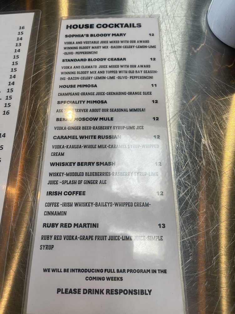 Homemade Italian sausage, peppers, onions, hot pepper, garlic and potato, all mixed up with 2 extra large eggs and served with homemade bread.